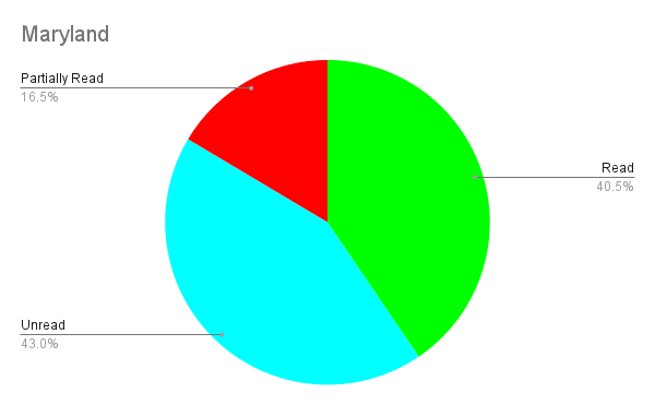 The main contributor to the chaos is how many books are unread or partially read. As you can see from the chart a full 52% of my books are unread and an additional 11% are partially read. I am almost certain that if I were to read these books at least some could be donated. I will say one of the partially read books on this list is my current read The Final Girls Support Group by Grady Hendrix. The others either are books where I read the chapter appropriate to my needs or they got too intense with their tension and I had to take a break. Babel by R. F. Kuang is one that I loved but the plot was gaining so much tension as it worked towards the climax and I wasn’t in a space where I could engage with it. I am looking forward to returning to it. I’m also looking forward to making a more significant dent in this overwhelming collection of 180 books.